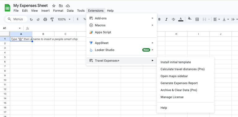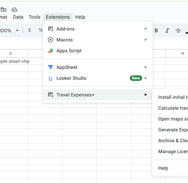 Install Travel Expenses+ from the Google Workspace Marketplace - Link Here. Just hit the install button and follow the simple steps.